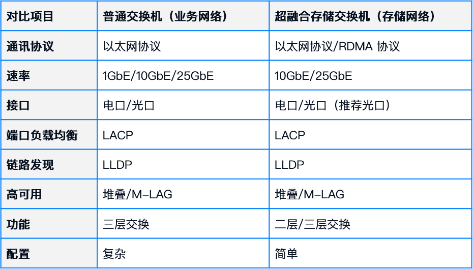 更多超融合交换机与普通交换机的区别,详见以下表格: