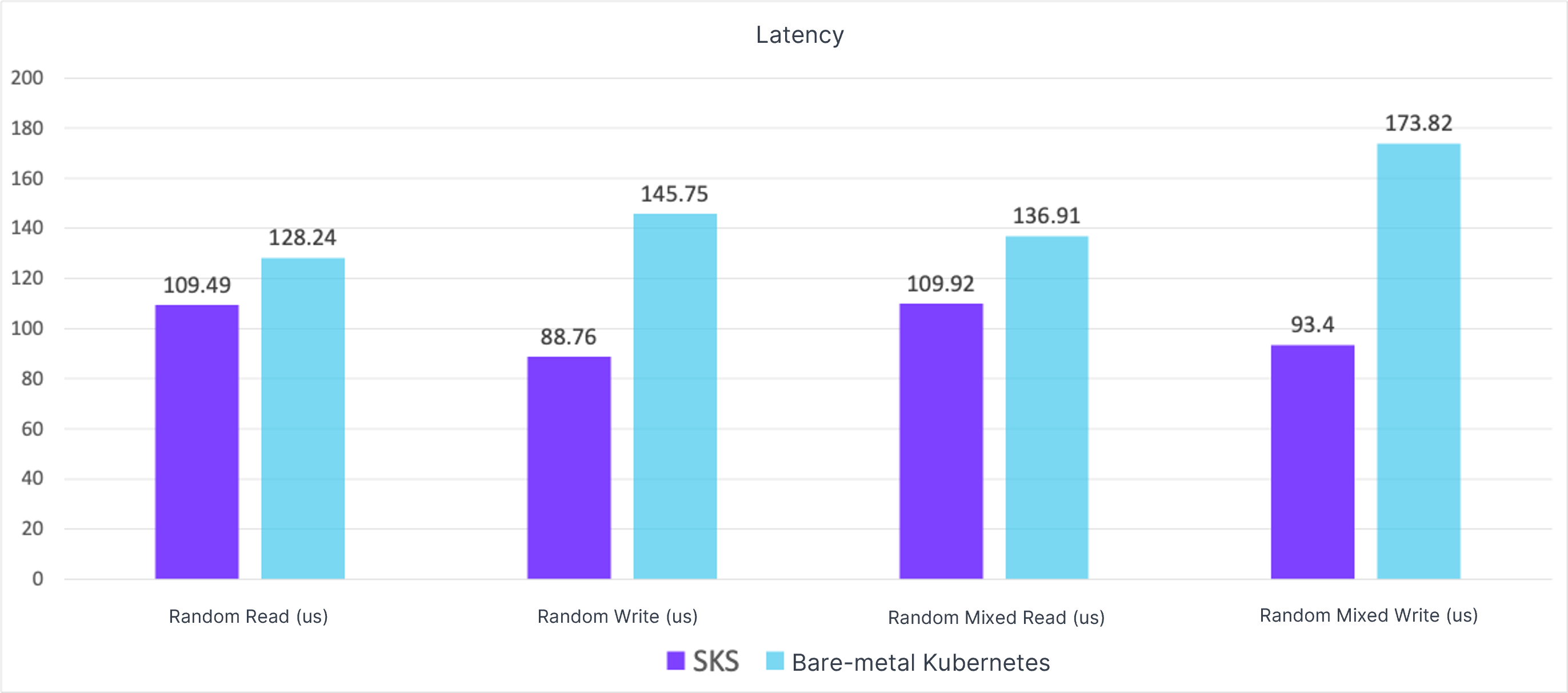 With less than 5,000 concurrent users, the performance gap between SKS and bare-metal Kubernetes was less than 4%. As the number of users increased, this gap could reach around 20%.
