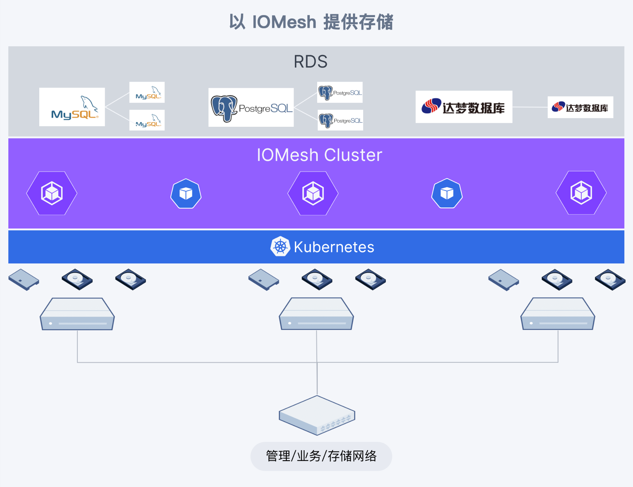 - 提升管理效率:IOMesh 和 RDS 可无缝对接统一管理,并且由基础架构部门统一运维,无需跨部门沟通和运维。