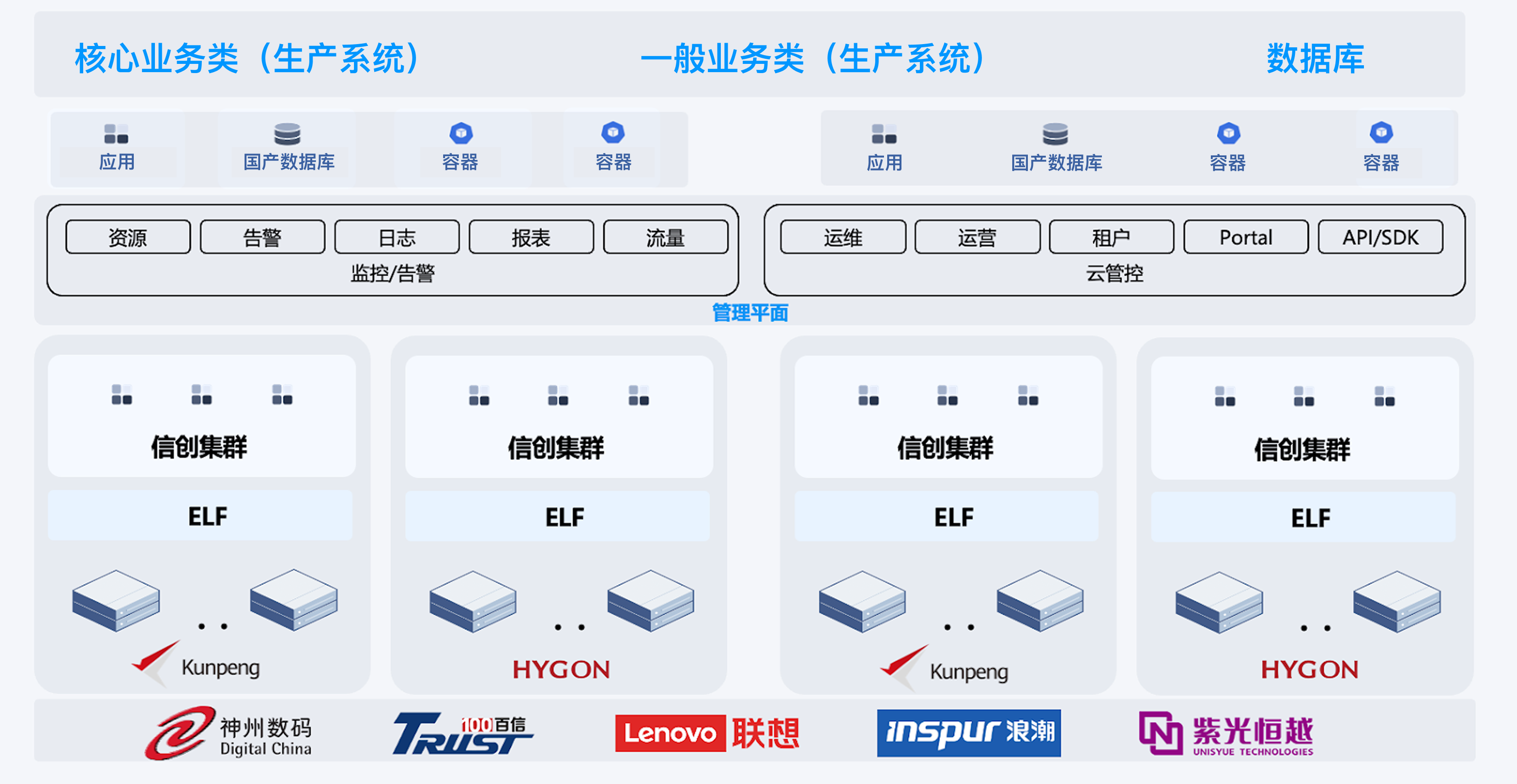 - C/D 类业务系统:包括生产系统、开发测试系统等,支持多种应用。
