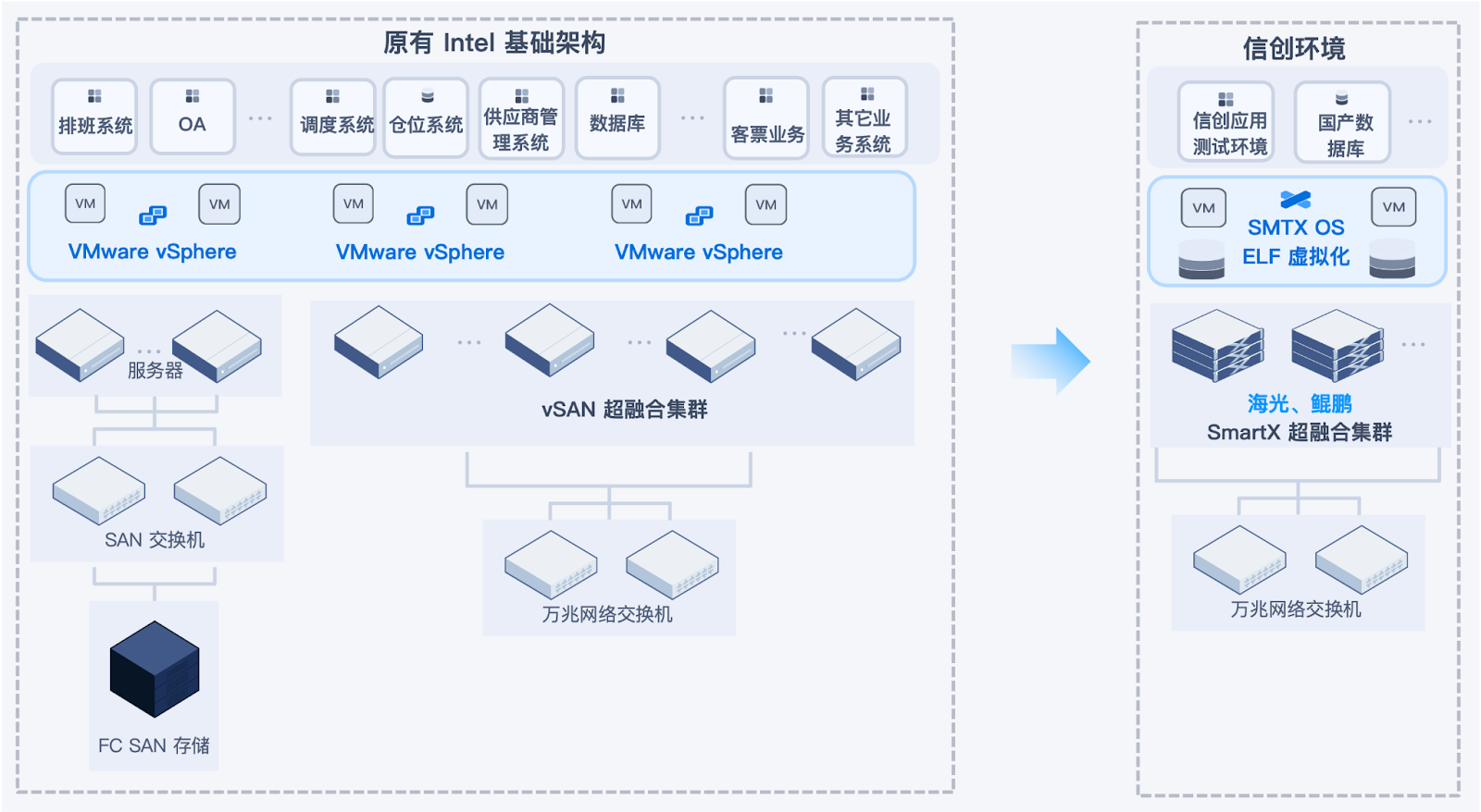 某头部航空公司:替代 vSphere 和 vSAN,同步实现信创转型