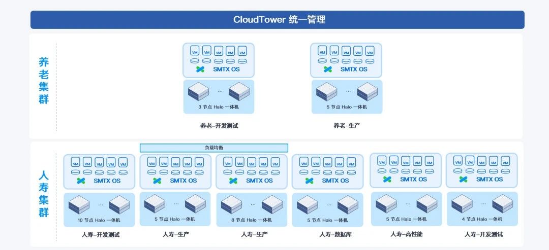 在选型过程中,SmartX 凭借核心自研能力、在 POC 过程中展示出的良好性能、稳定性及可靠性脱颖而出,获得了小批量部署的机会。同时,SmartX 超融合集群的快速交付能力也有效支持客户旗下养老公司筹建时的 IT 基础环境搭建。