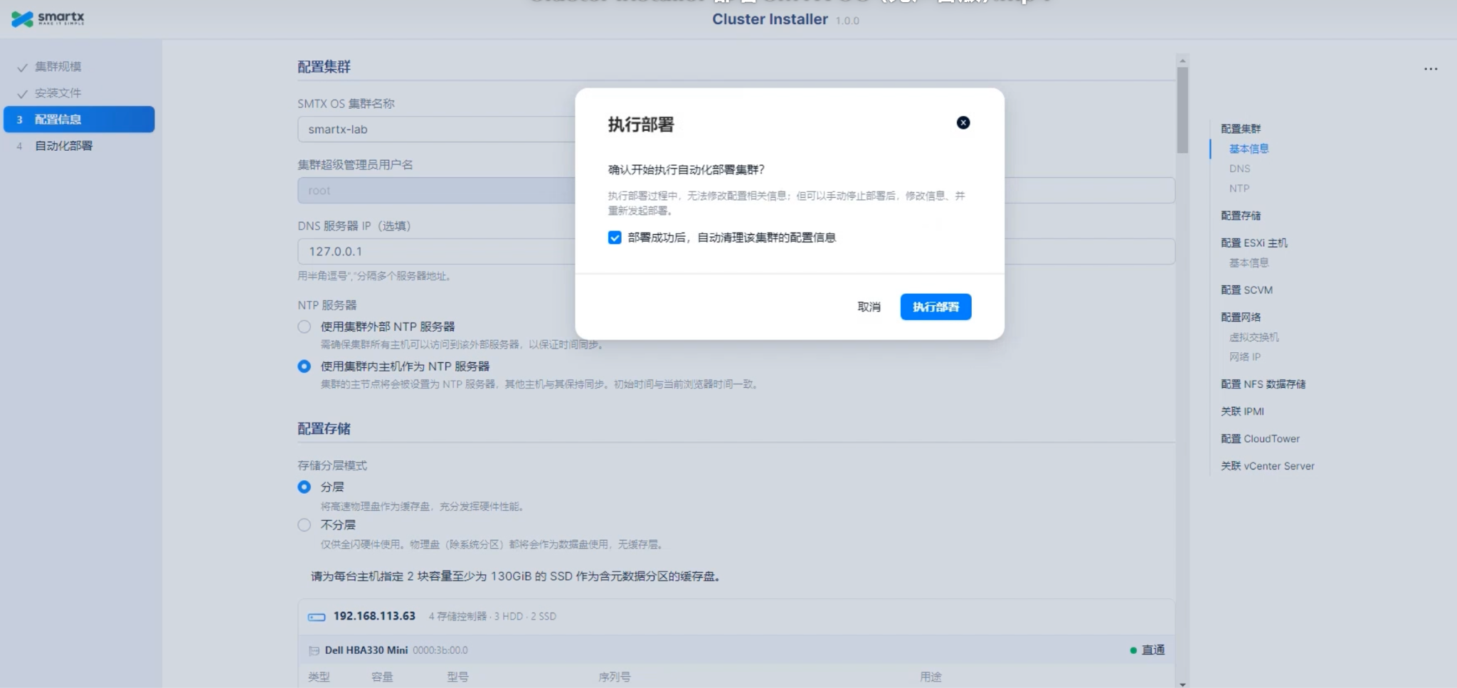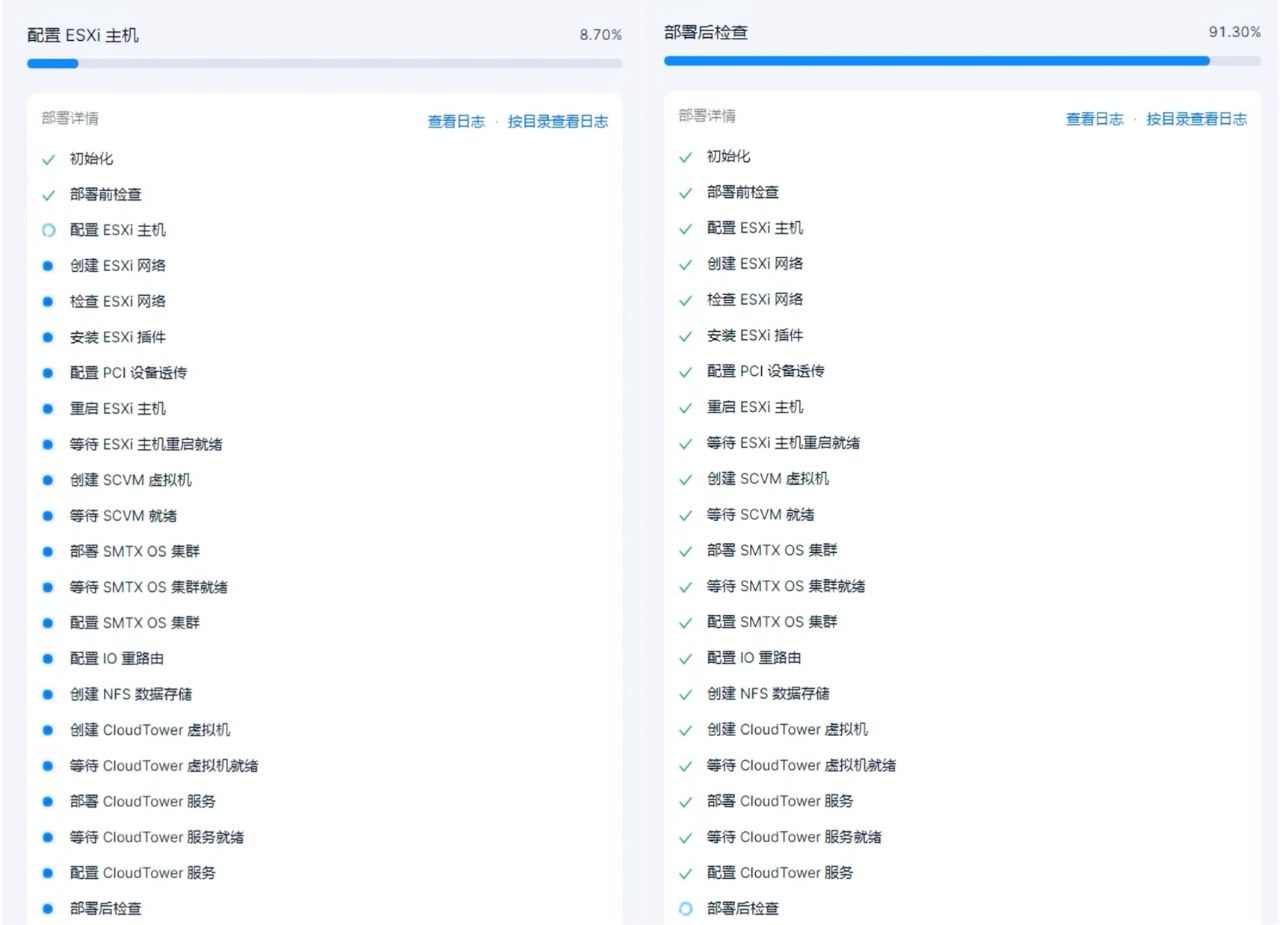在正式环境交付部署阶段,用户使用了 SmartX 集群自动化安装部署工具完成了多个集群的快速部署。榫卯企业云平台支持基于 Web UI 可手动干预的可视化部署,用户在日常运维工作中也使用升级中心对已有集群完成多次升级操作,使得客户对后续集群扩容、批量部署、集群升级加固等工作更加有信心。