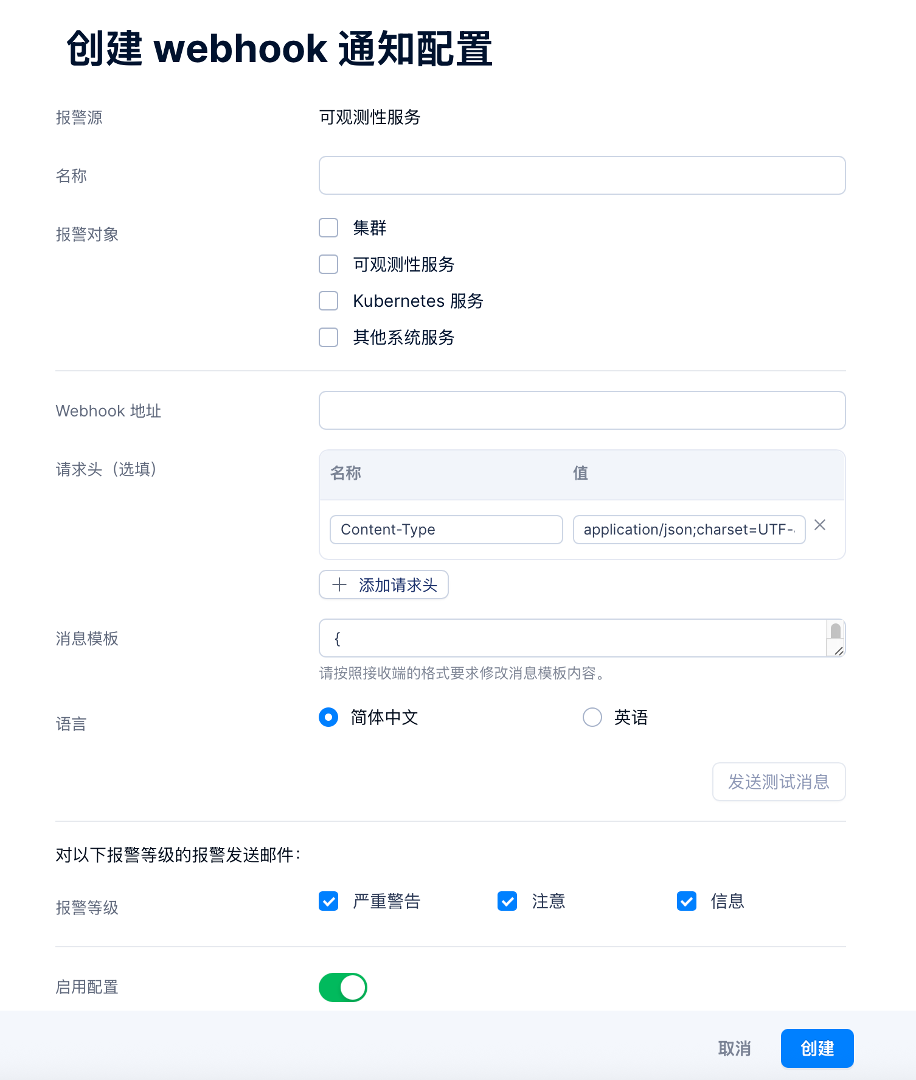 榫卯企业云平台同时支持基础告警推送,支持将告警信息发送至企业微信、钉钉、飞书等平台,也可以将报警发送至其他支持 webhook 的第三方平台或自研平台(如客户自研的短信平台),让用户能在第一时间做出响应。
