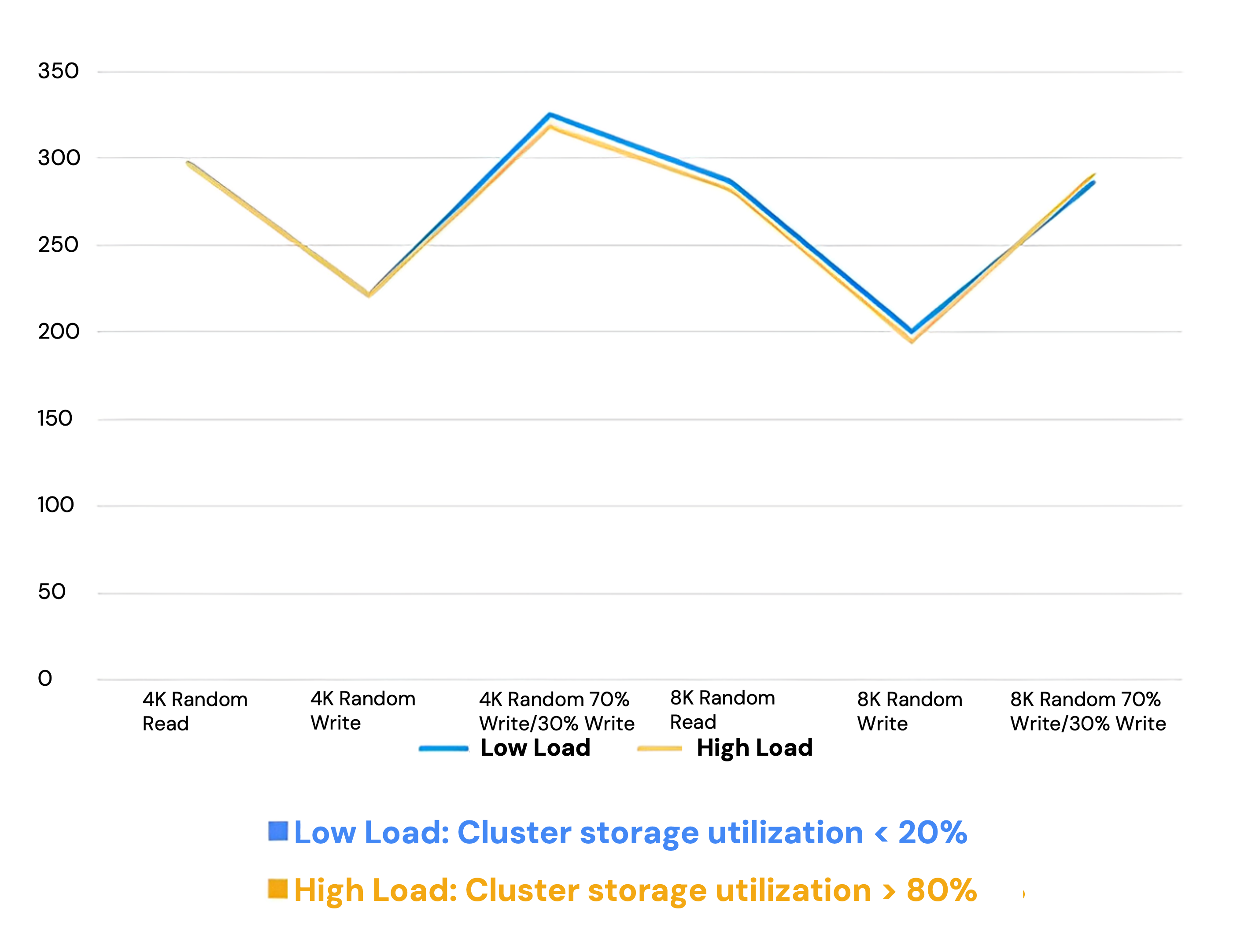 - Proven in Production: With nearly 400 financial services customers, more than 90% of whom run production and mission-critical workloads on SmartX ECP, single-customer clusters have been operating stably for over seven years. Benchmark tests show that even under 12 hours of sustained high I/O pressure, performance remains consistent (Figure 1). Similarly, clusters with storage utilization above 80% continue to deliver predictable, high-level performance (Figure 2).