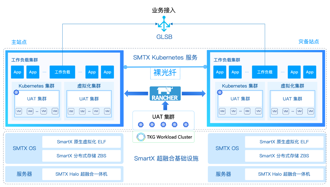 - 双站点分别部署生产与 UAT 环境,模拟跨中心业务容灾;