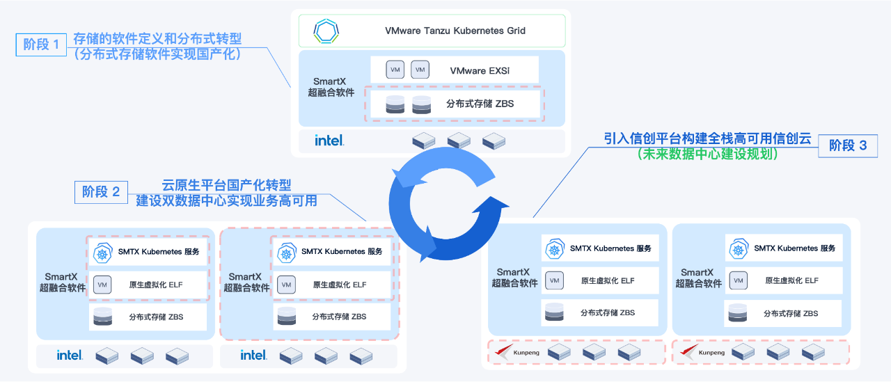 此外,用户制定了“超融合架构升级-国产化改造-信创转型”的分阶段演进路径:
