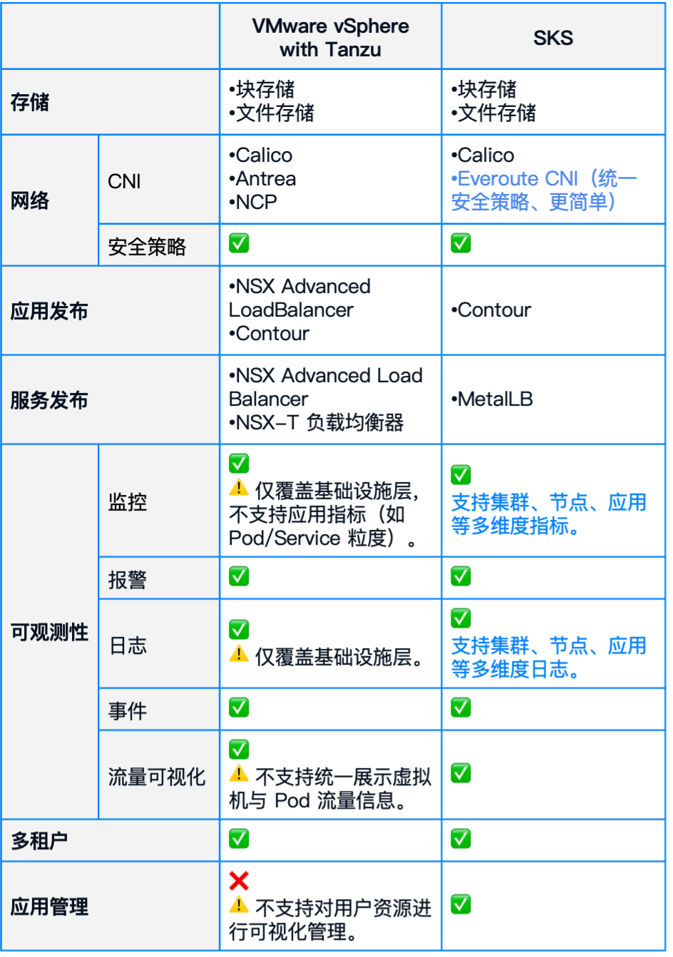 以下,我们将详细介绍如何以 SKS 替代 vSphere with Tanzu,包括关键能力对比、替代优势解读、迁移路径介绍和替代案例分享。