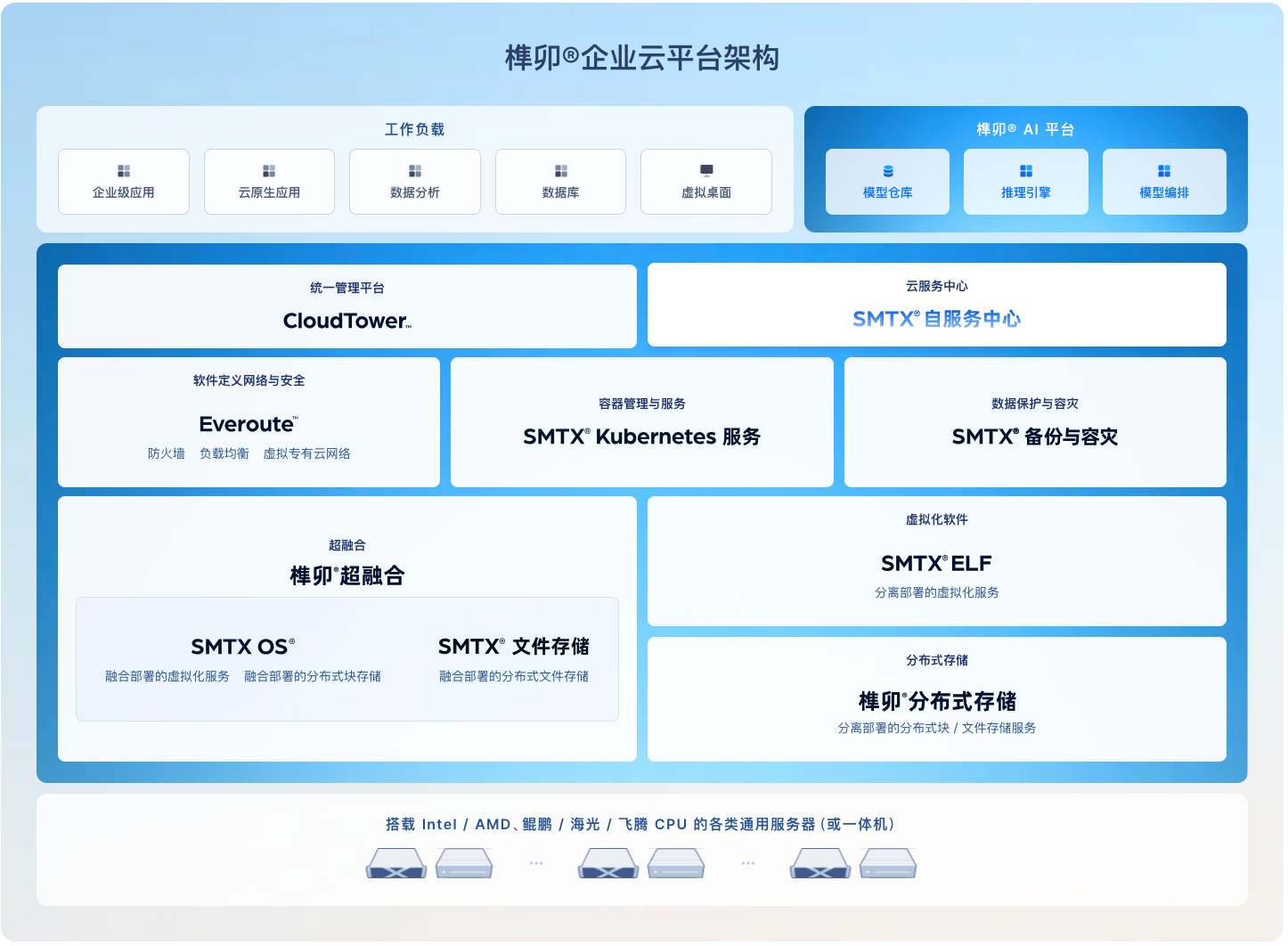 - 异构纳管:不仅支持 SmartX 企业云,还能统一纳管企业已有的 VMware 虚拟化环境,在一个平台内实现统一视图和管理。