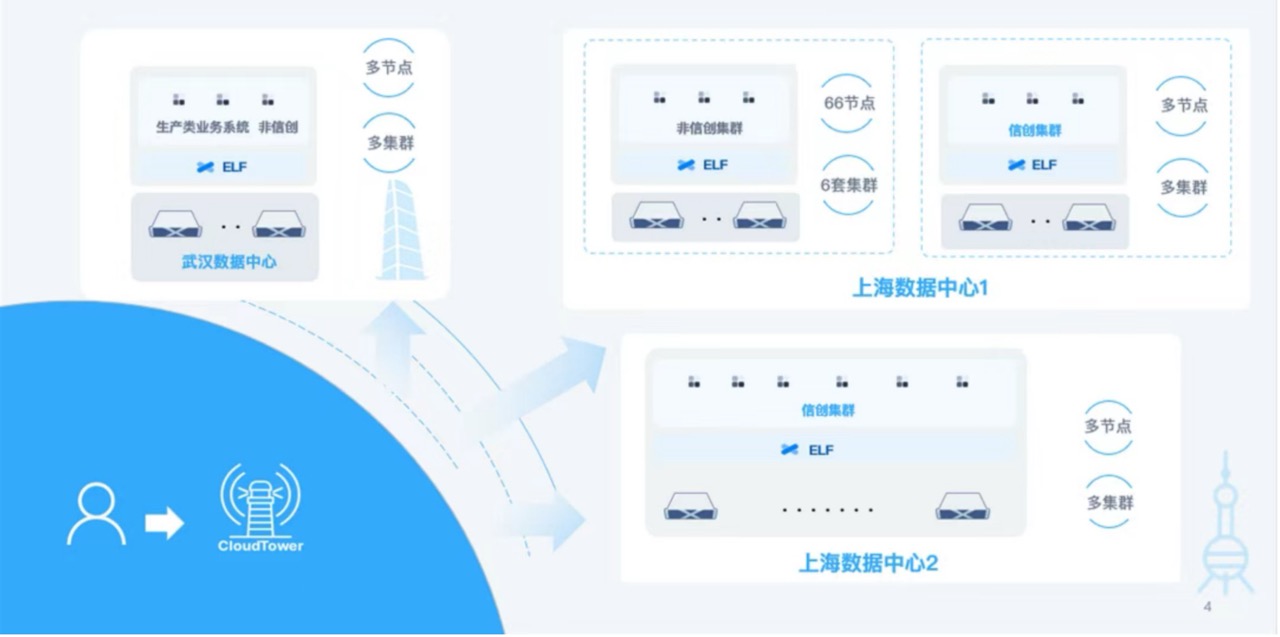 - 开发中心、卡中心、共享中心:分别部署了不同规模的节点和集群,支持各自的业务系统。