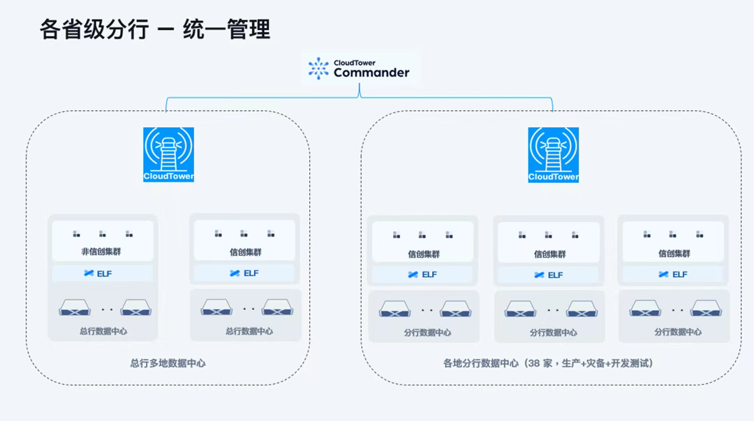 - 统一运维与标准化操作:总行可以将最佳实践和标准化配置通过 CloudTower Commander 快速推广到各分行,确保所有集群的配置一致性和安全性。