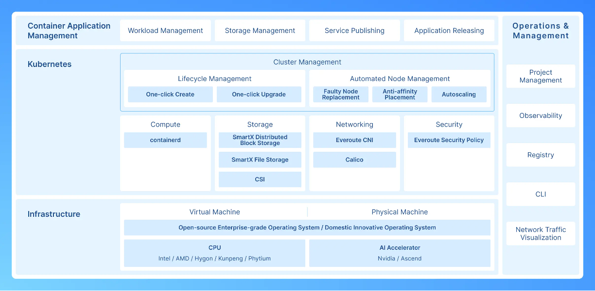 By eliminating the traditional “VM vs. container” divide, SmartX ECP empowers organizations to modernize their IT infrastructure without sacrificing flexibility, performance, or reliability—making it a future-proof foundation for enterprise cloud-native transformation.