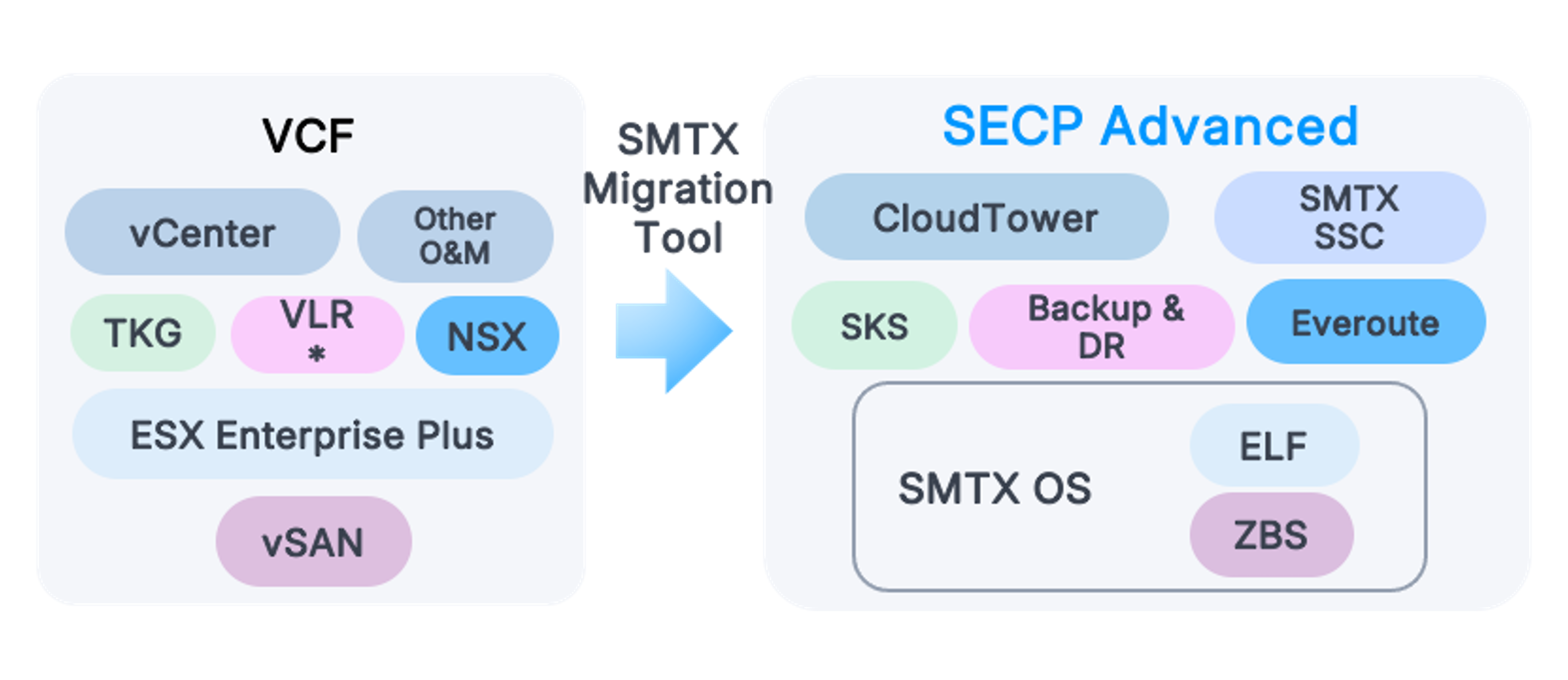 Similar to VMware Cloud Foundation (VCF), SmartX ECP Advanced delivers a complete set of cloud infrastructure capabilities, including compute, storage, networking, Kubernetes service, backup and disaster recovery, network security, and management. Unlike VCF, however, it offers greater flexibility—allowing customers to adopt a modular approach and progress their full-stack infrastructure transformation at their own pace, while avoiding the high subscription costs of VMware.