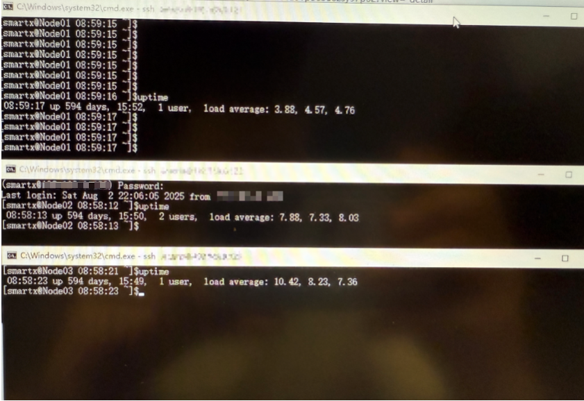 我司(苏州天剑)于 2023 年部署交付 SmartX 超融合*三节点集群,当前每节点配备 384GB 内存,集群运行稳定,Uptime 时间为 594 天,承载包括 ERP、MES 等核心业务系统在内的多项关键业务系统。随着业务规模扩大及资源需求提升,ERP 系统数据库单机已分配 256GB 内存,整体集群内存资源趋于紧张,出现潜在的资源瓶颈风险。