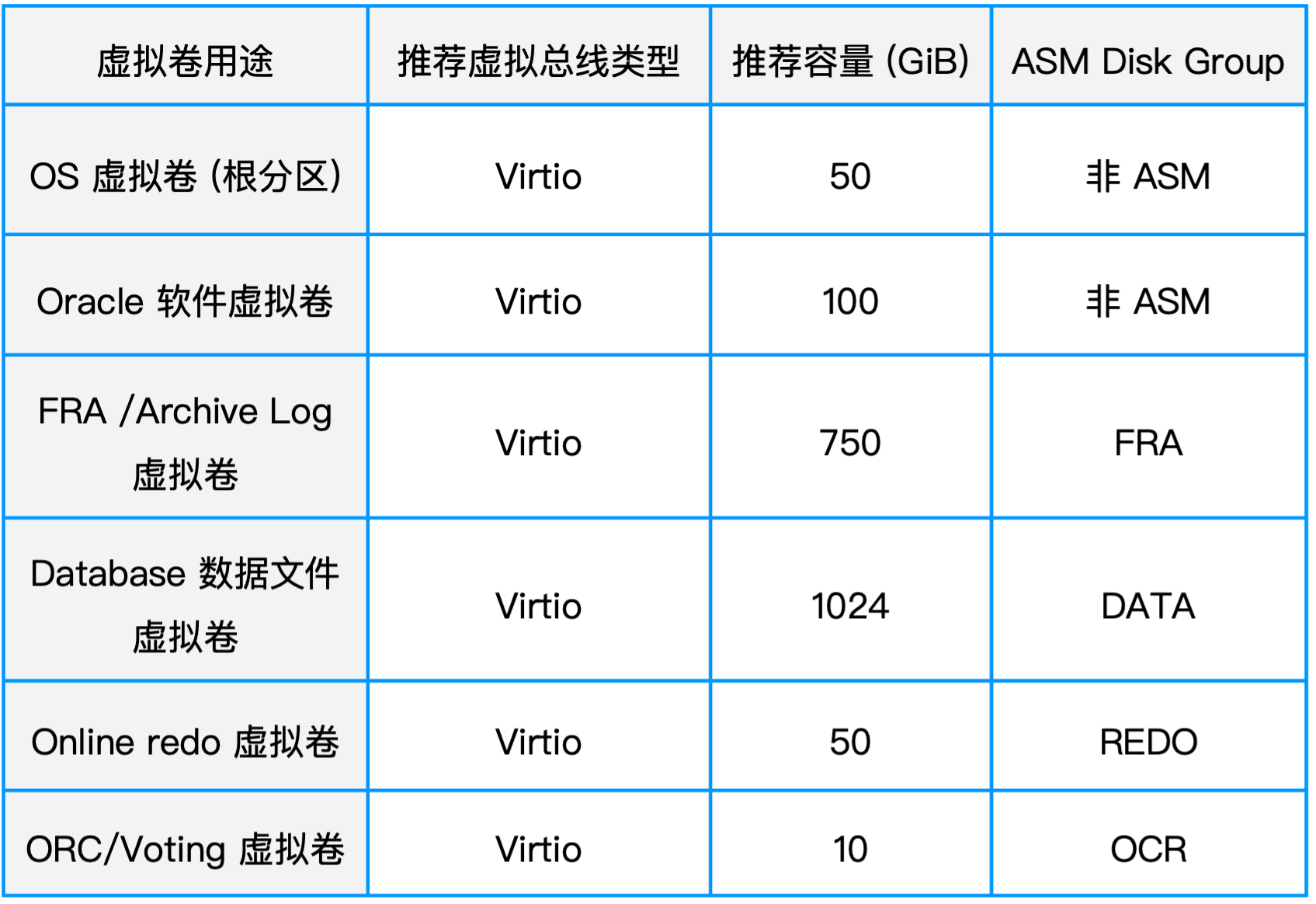 - 分卷存储不同功能文件:建议将数据库的不同类型文件(如 Oracle 日志卷、数据库数据文件卷等)分布在独立的虚拟卷中,以提高 I/O 并发能力;
