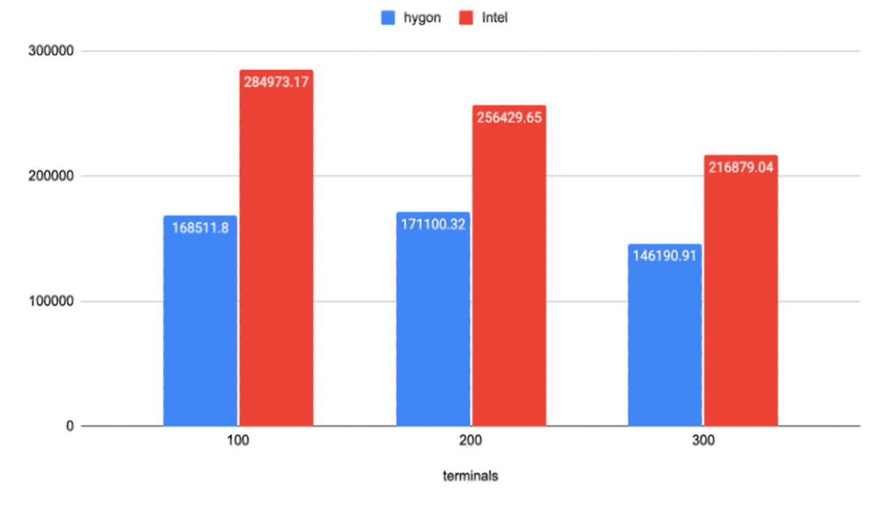最后,我们再提供一组将 Oracle 数据库从 Intel 平台迁移到海光平台前后的性能对比,供读者参考。