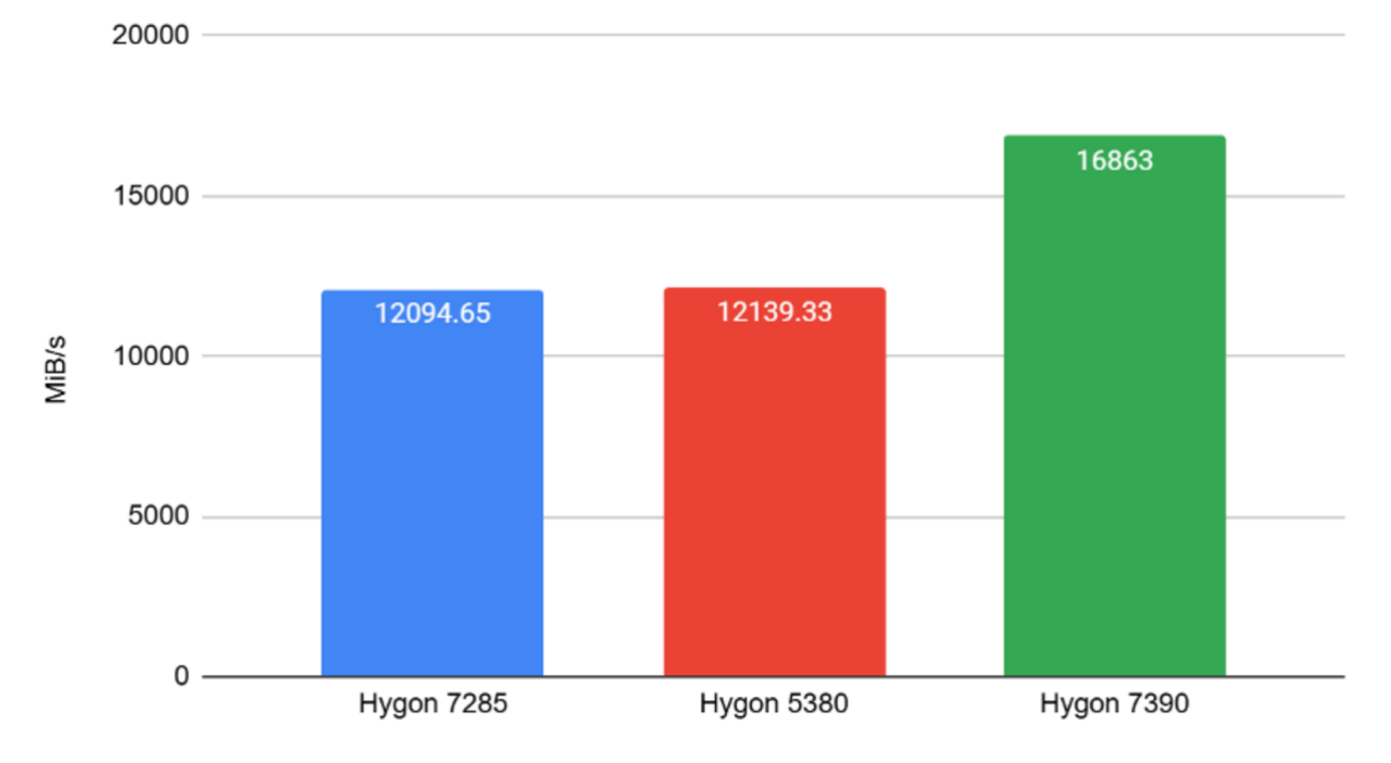 在裸金属测试中,海光 7390 的事务处理能力及内存带宽均优于同系列的 7285 与 5380: