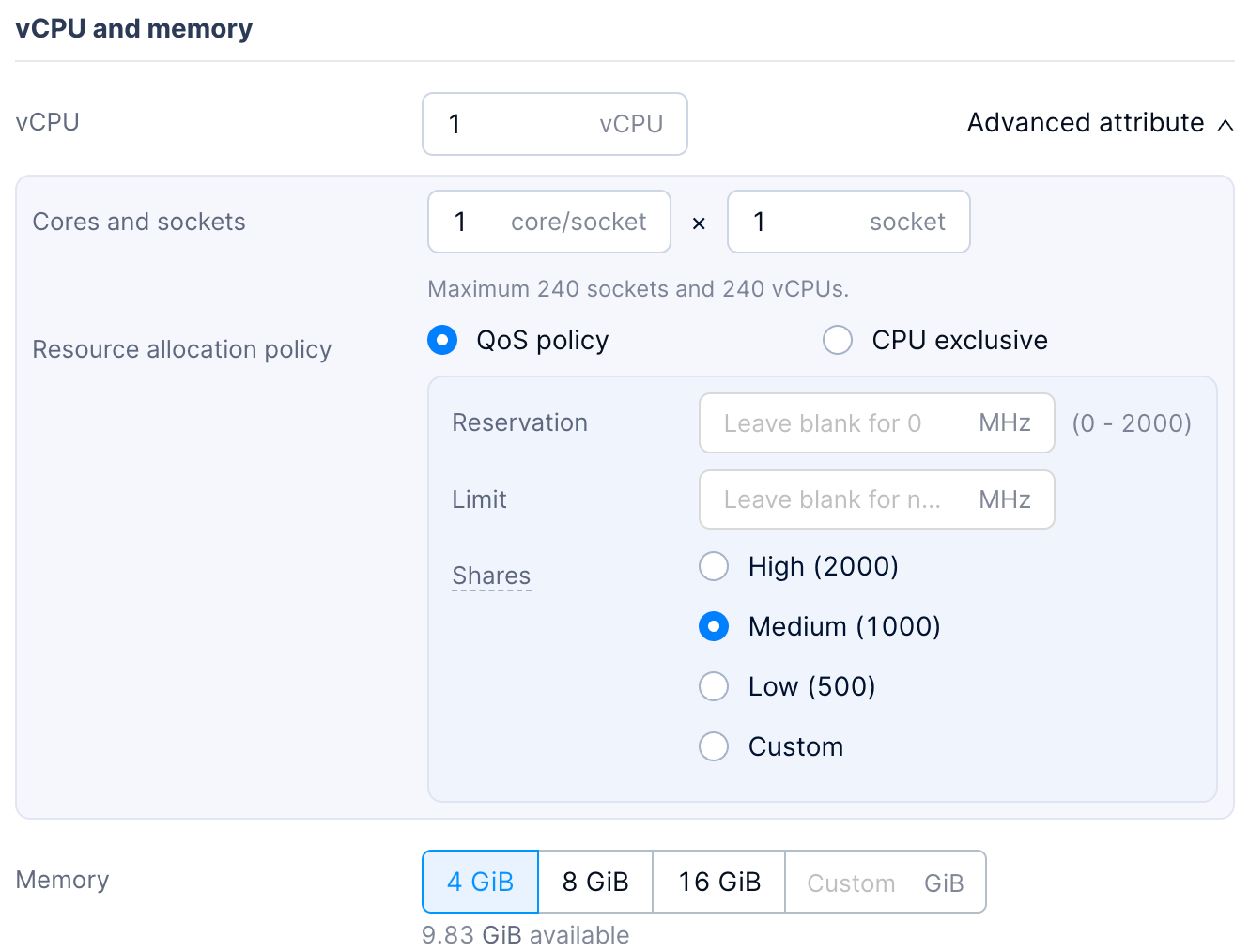 To address this, SMTX OS 6.2 and later verisons support CPU QoS settings, enabling enterprises to flexibly manage shared resources through the configuration of CPU shares, reservations, and limits.