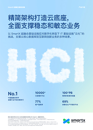 通过引入超融合架构,您可以先完成存储的分布式云化转型和替换,再从 vSphere 平台逐步迁移,实现虚拟化的替换,有效降低转型的难度和风险。